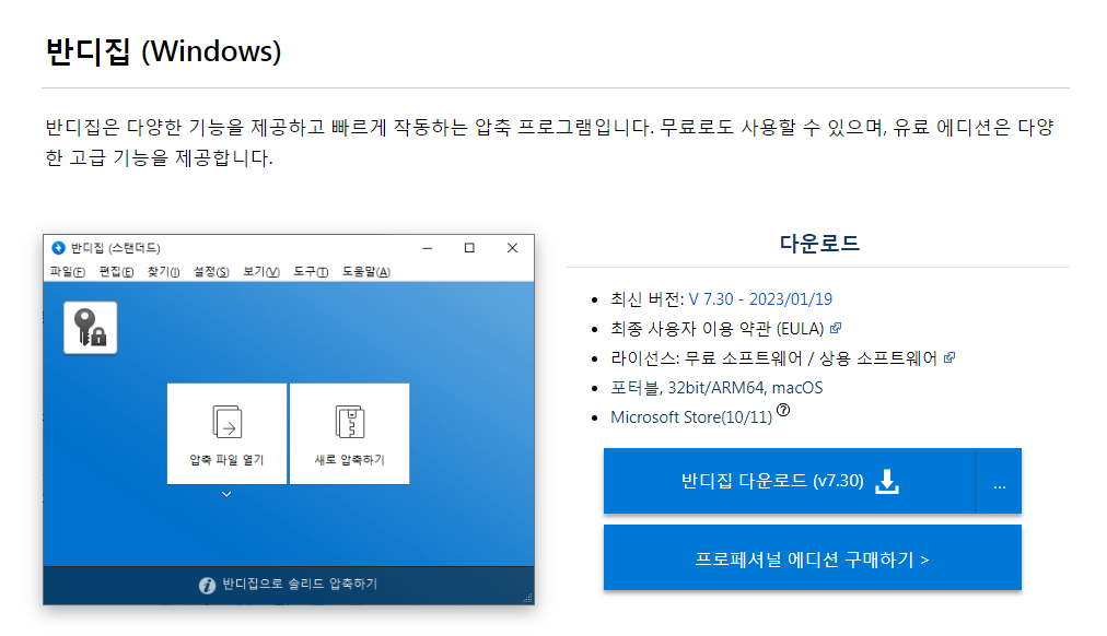 | 공식사이트 | https://kr.bandisoft.com/bandizip/ |